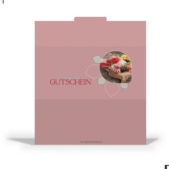 Im Wickelfalz 210 x 100 mm (offen 210 x 240 mm) mit Stecklasche gefertigt, kein Kuvert notwendig. Alle Gutscheine mit hochglanzlackierter Außenseite aus 275 g Postkartenkarton, beidseitig 4-farbig bedruckt. Großes Feld für Ihren Firmenstempel.