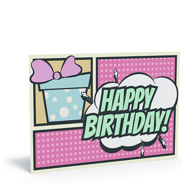 Personalisieren Sie Ihre Geburtstagskarten mit Logo und Adresse.