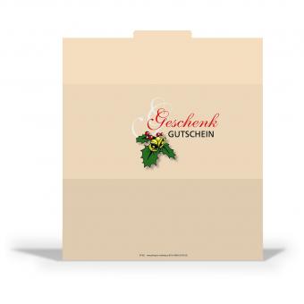 Im Wickelfalz 210 x 100 mm (offen 210 x 240 mm) mit Stecklasche gefertigt, kein Kuvert notwendig. Alle Gutscheine mit hochglanzlackierter Außenseite aus 275 g Postkartenkarton, beidseitig 4-farbig bedruckt. Großes Feld für Ihren Firmenstempel.